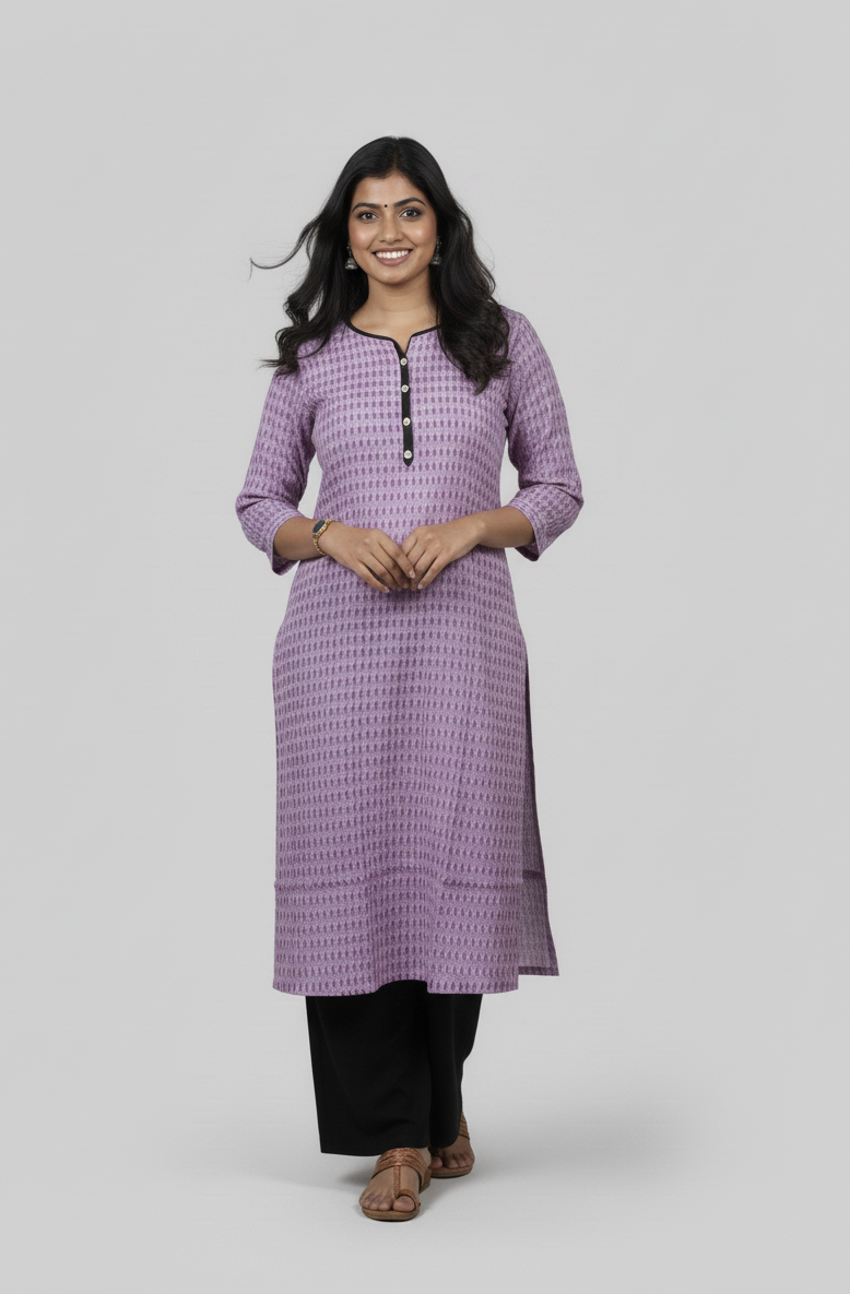 This kurta is made from pure cotton fabric. Machine wash friendly.