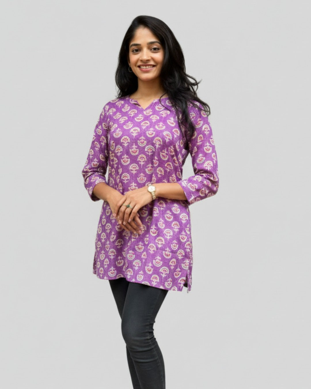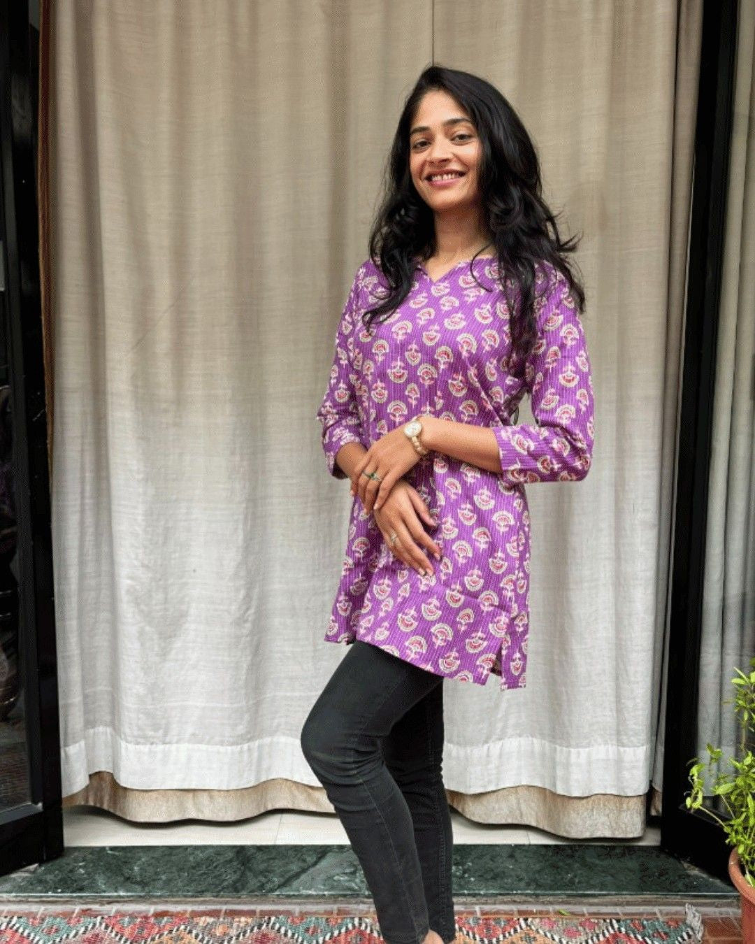True to size and flattering fit.