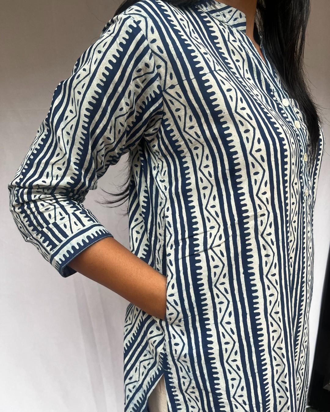 This is a handblock print product. We recommend a gentle hand wash with cold water and mild detergent. It may bleed color in the initial washes due to the special nature of the dyes, please wash separately. Avoid soaking and dry in shade, inside out.