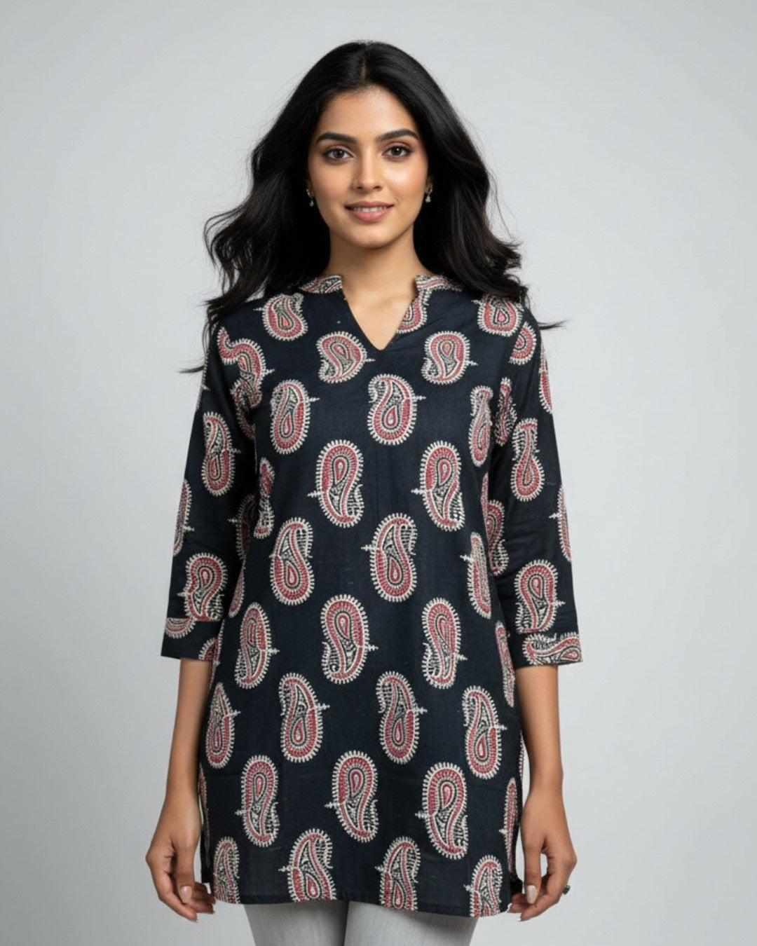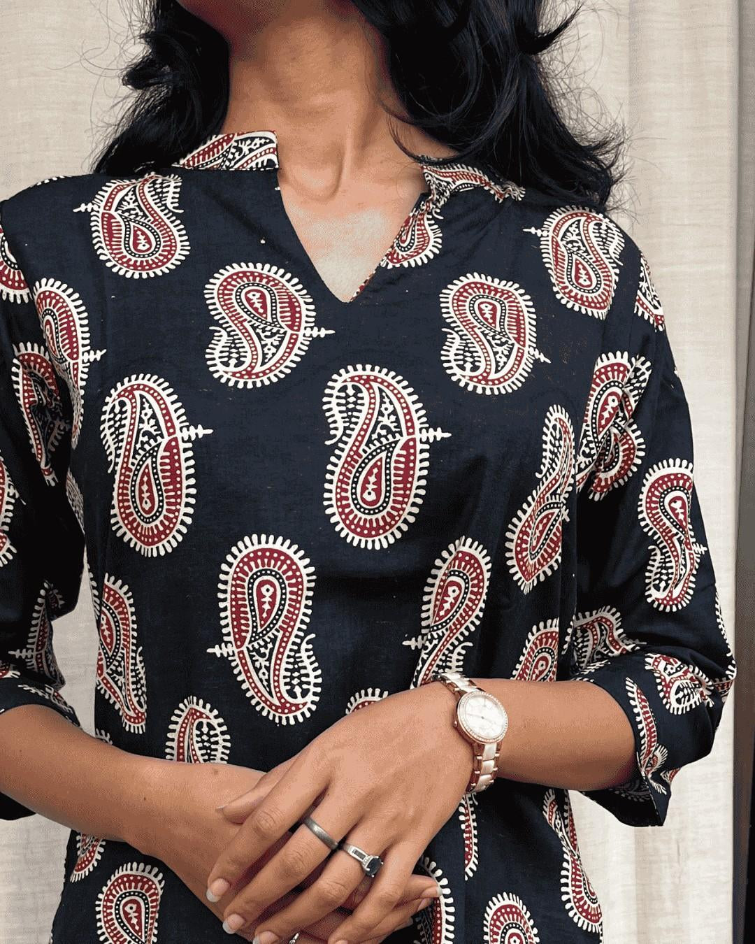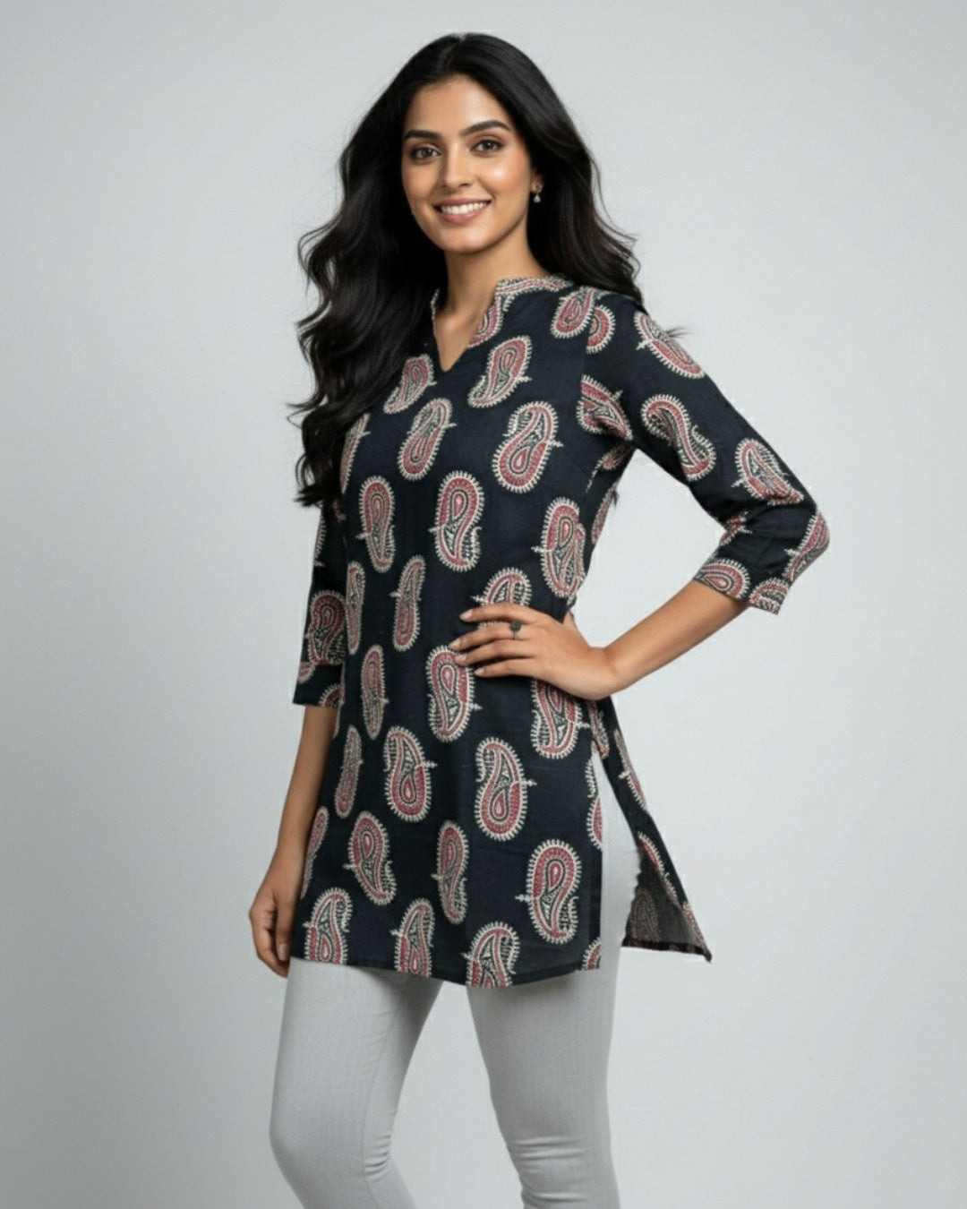 The short kurti gives a lovely fall.