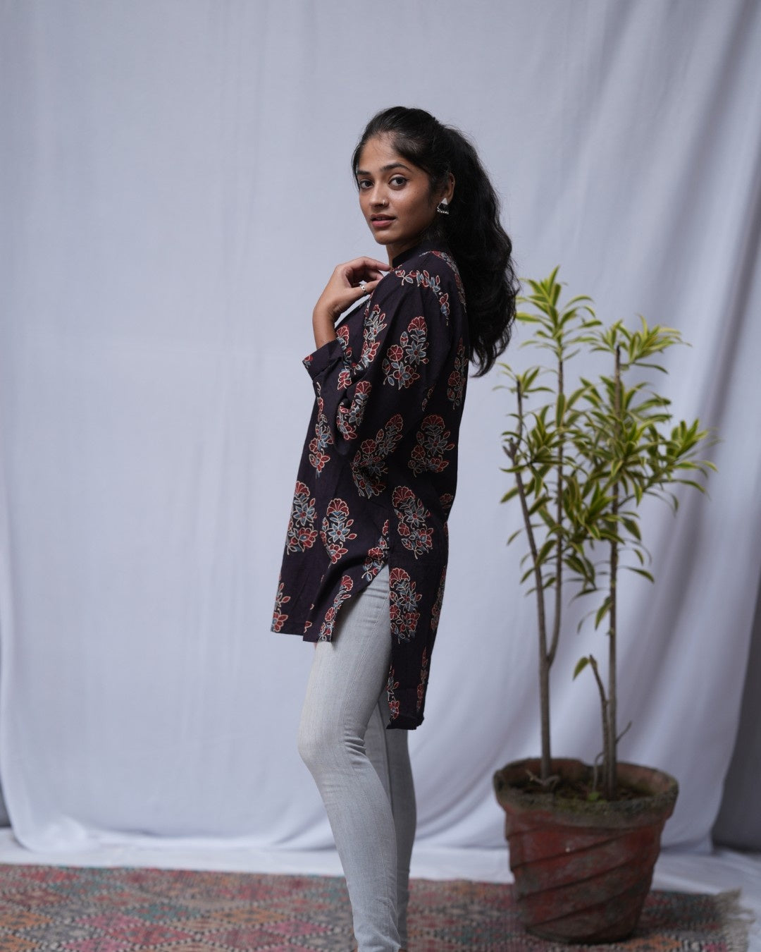 Love wearing this short kurti with jeans. The Ajrakh print is classy.