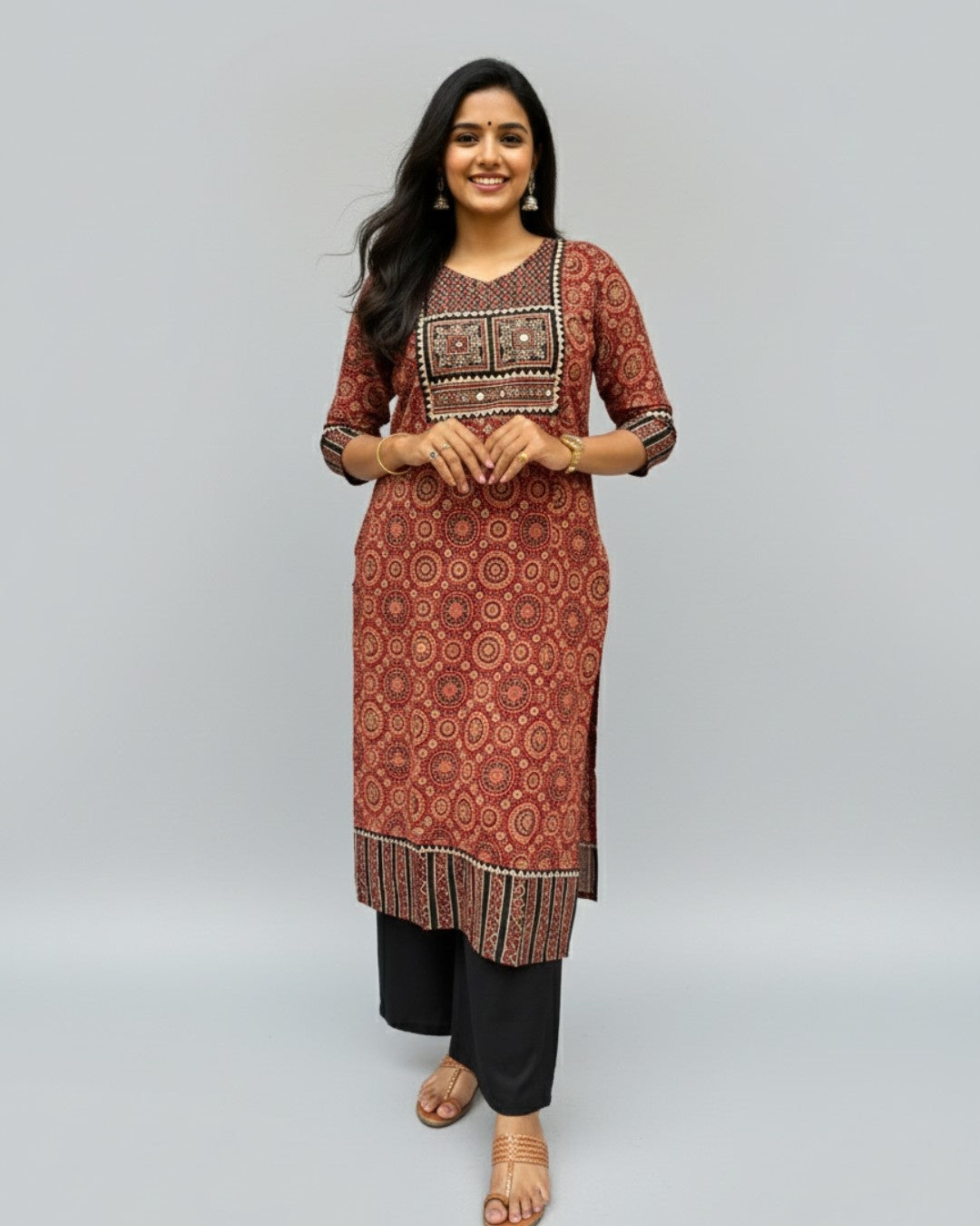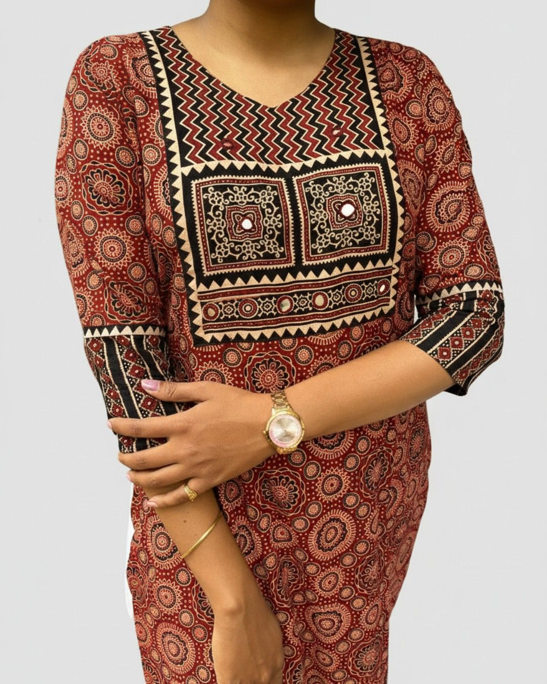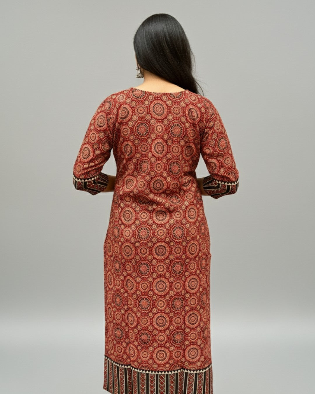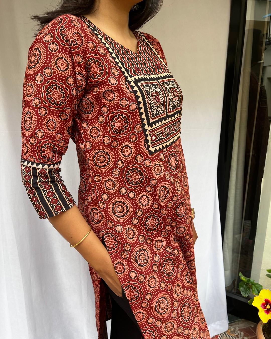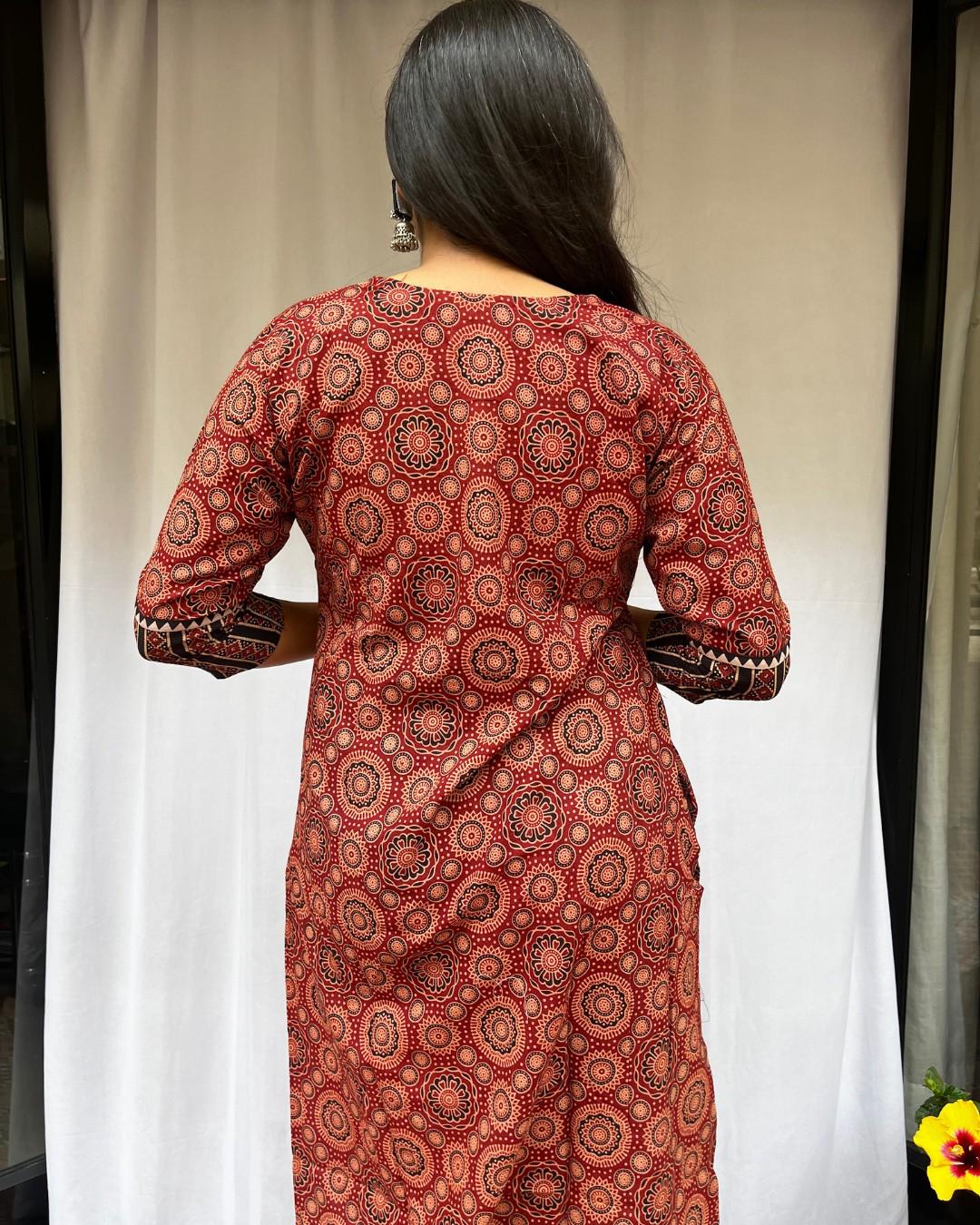 Rithika Maroon Ajrakh Cotton Straight Kurta