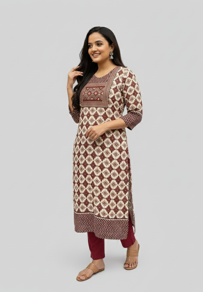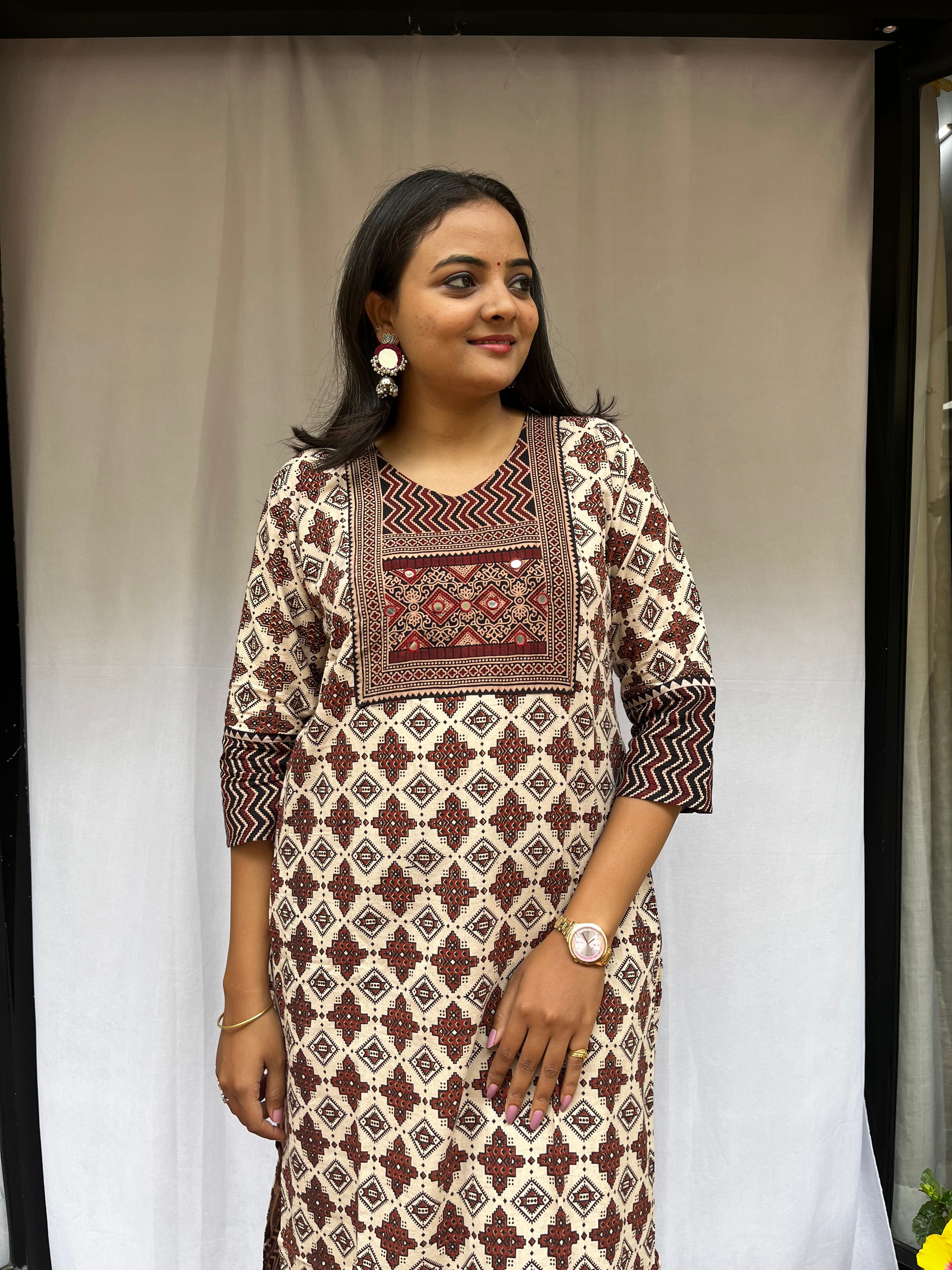 Shreya Cream Ajrakh Cotton Straight Kurta